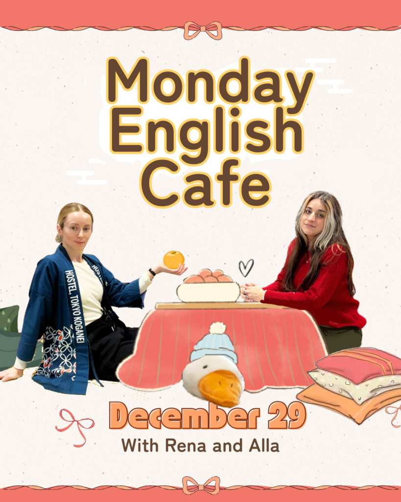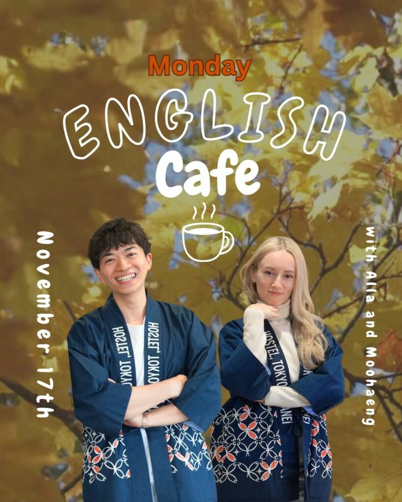 Wild Cherry Blossom Hostelでは毎週月曜日20:15-21:15に英会話カフェを開催しています!